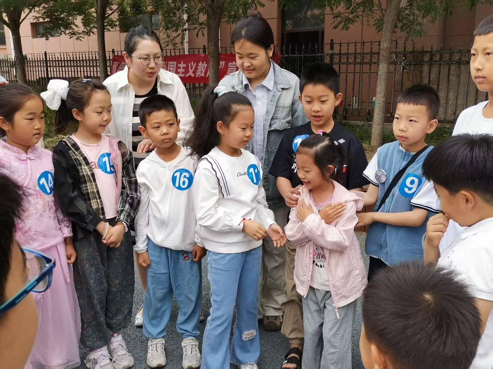 活动在“风中劲草”的信任传递中拉开序幕。孩子们分成小组,围绕中心的“小草”筑起人墙。当“小草”勇敢后仰,即刻被四周的“暖风”稳稳托起。主持人王宇老师在孩子们的笑声中深情引导:“一个人的勇敢,需要伙伴的力量托举;一个国家的强大,更需要千千万万颗心紧紧相依。”简单的游戏,悄然在稚嫩心田埋下团结协作的种子。
