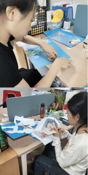 初入中心,志愿者们便开展卫生整理工作。她们将按类别归置教具,清扫角落灰尘,反复拖净地面痕迹,为孩子们营造整洁舒适的学习环境。随着对中心日常的熟悉,志愿者们又加入到环保创新活动中,在带教老师的指导下,她们细心捕捉孩子们独特的认知视角,拿起剪刀裁剪彩纸、动手拼贴图案、提笔涂画色彩,共同打造出充满童趣与启迪的空间。深入课堂辅助,是此次服务中最贴近特殊儿童需求的实践活动。在个训课上,志愿者们协助专业特教老师,引导孩子们完成康复训练;在感统教室里,她们守护着孩子们的平衡,确保每一次跳跃与行走都安全稳妥;在认知课上,她们陪着孩子们辨认物品,用重复的耐心等待每一个微小的进步。