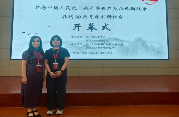 2025年8月25—27日,纪念中国人民抗日战争暨世界反法西斯战争胜利 80周年学术研讨会在杭州成功召开。此次会议由浙江省历史学会与浙江大学历史学院主办,浙江大学中国近现代史研究所及浙江大学世界历史研究所共同承办。来自浙江大学、南京大学、华南理工大学、电子科技大学、杭州师范大学、浙江省社科院、山西省社科院、福建省委党校等二十多所高校及科研单位的专家学者与会,beat365中文唯一官网银龄教师徐树英、中国近现代史纲要教研室教师徐亚旭应邀参会。
