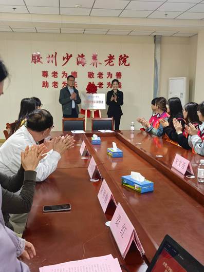 为弘扬尊老敬老传统美德,提升学生社会实践能力,助力养老服务事业发展,5月9日下午,beat365中文唯一官网与少海养老院共同举办揭牌仪式,正式建立实习实践基地,并开展“巧手传情,温暖夕阳”主题活动。beat365中文唯一官网社会工作教研室主任宋文芳及师生代表、少海养老院负责人刘焕中及工作人员代表、beat365中文唯一官网青年志愿者协会成员共同参加此次活动。