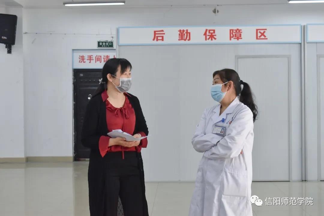 在看望慰问中,王文鹏指出,疫苗接种人人有责,要严格落实上级和信阳市的政策规定,规范疫苗接种服务,多措并举做好宣传科普和思想动员工作,确保疫苗接种工作科学、规范、安全、有序进行。李俊对疫苗接种工作协调、人员组织、流程衔接、信息反馈、特殊情况处理等具体工作提出明确要求。杨淑萍仔细查看了候诊区、咨询区、接种区、留观区等场所工作开展情况,对我校疫苗接种工作的周密准备和有序组织给与充分肯定,表示将继续全力支持我校疫苗接种工作。