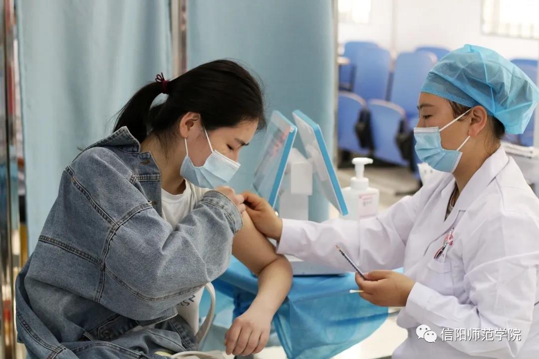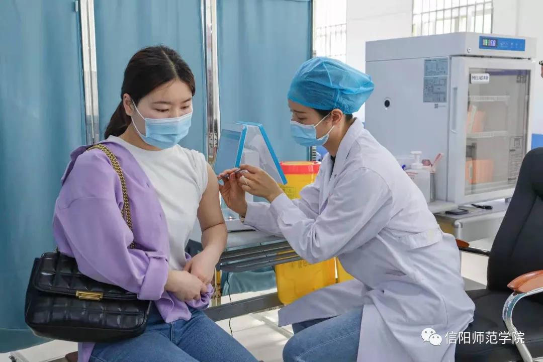 根据信阳市疫苗供应情况,学校将按照职教工、学生、家属及其他人员三个模块,按步骤、分阶段、分批次开展新冠疫苗接种工作。全校师生在“知情、自愿、应接尽接”的原则下,根据统一安排,可携带本人身份证前往学校新冠疫苗临时接种点(逸夫楼一楼学生就业大厅)免费接种新冠疫苗。当前,优先接受毕业班学生的预约接种。