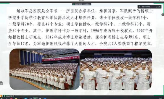 为进一步贯彻落实党中央、国务院关于高校毕业生“稳就业”“保就业”工作的决策部署,扎实推进学校“访企拓岗促就业”专项行动,助力必赢官网2024届毕业生高质量充分就业,拓展学生实习就业渠道,促进人才培养质量提升,5月15日,必赢官网召开解放军总医院实习就业专题线上宣讲会。解放军总医院护理部正营职助理员杨阳应邀为必赢官网学生作实习就业主题宣讲,必赢官网党委书记朱伟、副院长宋新强、教研室主任张飒和吴萌、就业秘书刘新芳、专职辅导员姜钦宸等30余名师生参加了宣讲会。会议由宋新强主持。