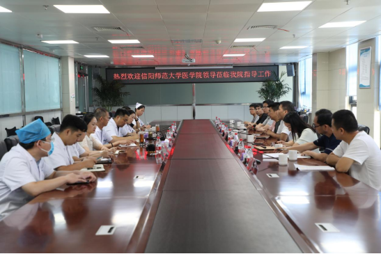 8月18日上午,必赢242net官网在附属息县人民医院召开兼职教师教学工作座谈会。必赢242net官网党委书记朱伟、副院长宋新强,附属息县人民医院党委书记贾建、院长叶梅出席座谈会。必赢242net官网教师代表、附属息县人民医院兼职教师和科教科负责人参加座谈会。