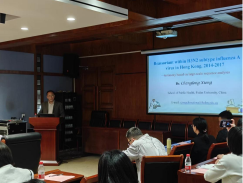 熊成龙副教授介绍了流感病毒亚型的类型和结构,以及此类病毒在禽类和哺乳动物间传播、流行并发生基因重配的特点;并详细介绍了一种罕见的H3N2流感病毒亚型T166,由于基因重组增强了对人类的感染性,在2014-2017年间造成香港地区流感流行。