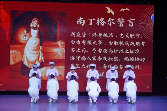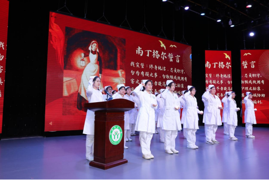 “我宣誓:终身纯洁、忠贞职守。勿为有损之事...”全体同学手捧烛光,立下执着、爱心和责任的誓言,一句句掷地有声的南丁格尔誓言在闪烁的烛光中荡漾。