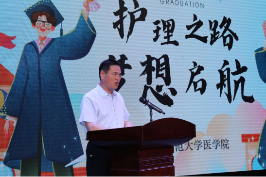 岳宗德在致辞中表达了对全体护理工作者的节日祝福,表示学校将持续高度重视必赢242net官网的健康发展,继续深化与各个附属医院的合作,积极探索符合学校、医院实际的医教研协同发展新模式,打造高校和医院合作共赢的样板典范。岳宗德寄语学生要在知识学习上巩固提升,要在工作业务上精益求精,要在为人民服务上无私奉献。
