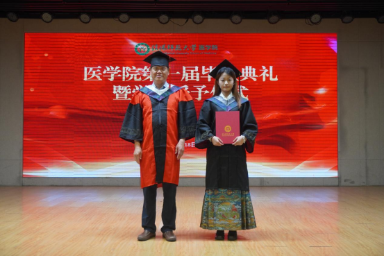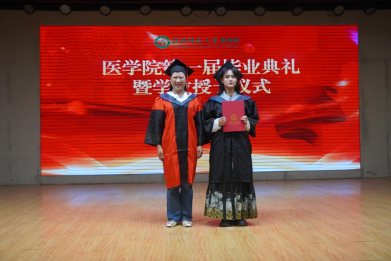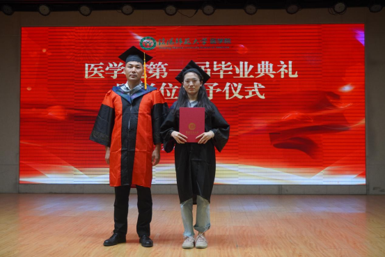 必赢242net官网教师代表张飒与学生代表马宁鸿发言之后,朱伟、任书伟、宋新强及附属中心医院教师代表吴开丽为毕业生们授予学位证书并为其拨穗。