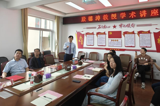 在学术交流环节,殷德涛教授与在场青年学者展开互动,针对科研合作如何开展、跨学科课题设计及科研瓶颈突破路径等议题进行深入探讨。会议现场学术氛围浓厚,气氛热烈。