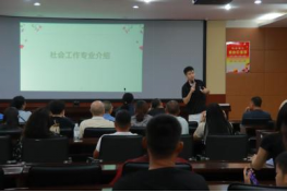 各教研室主任分别就学院三个特色专业进行了介绍:法学教研室主任结合优秀毕业生案例从学科优势、就业方向及行业前景展开讲解;应用心理学教研室主任结合行业需求与人才培养目标,详细阐述了专业在学校心理健康教育、社会心理咨询等领域的具体应用,同时说明这些应用场景如何对接专业课程体系与实践教学环节;社会工作教研室主任结合当前社会服务领域的发展需求,详细介绍了该专业在民生保障类社会服务、基层社区治理、特殊群体帮扶等方面的培养目标,同时具体说明了专业依托的校内实训中心、校外合作社工机构等实践平台,以及这些平台如何助力学生将理论知识转化为实务能力。