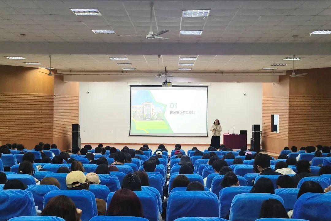 活动特邀“蓝马甲”志愿普法讲师团成员王怀梅、郑方娇担任主讲嘉宾。王怀梅结合高校实际案例,围绕“校园安全”这一主题,从防诈骗、消防安全、交通安全、消防安全、网络安全等多个角度展开讲解。通过生动的案例分析、实用的防范技巧和互动问答环节,深入浅出地向同学们普及了校园安全知识,强调了“安全无小事,防范于未然”的重要性。