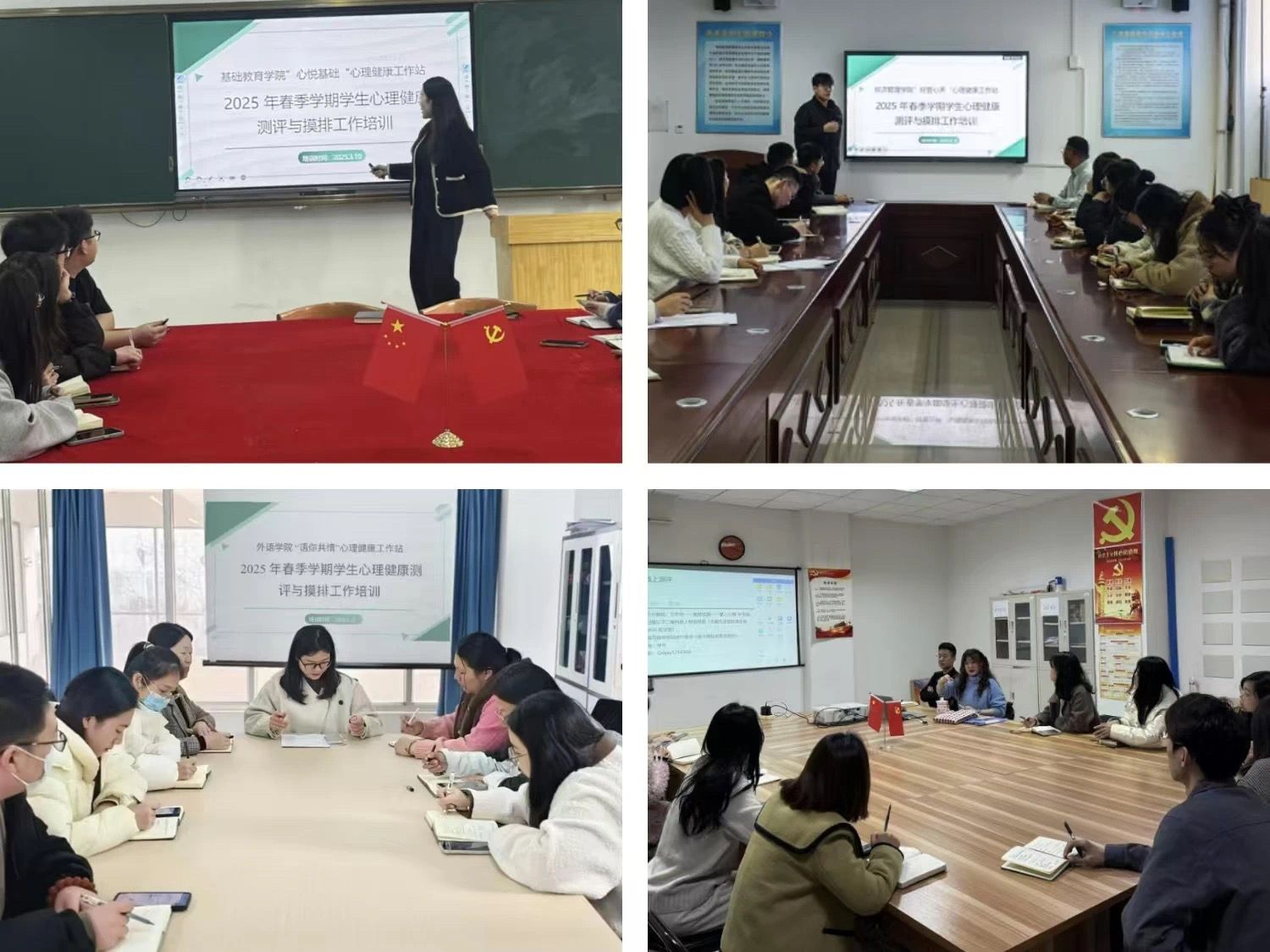 为深入推进心理健康工作,促进大学生的身心健康和谐发展,近日,beat365中文唯一官网积极开展2025年春季学期全体学生心理健康测评与摸排工作。应用心理学专业的6名专任教师,以二级学院心理健康工作站站长的身份,深入各二级学院,开展了一场意义深远的专题培训,为校园心理健康工作注入专业力量。