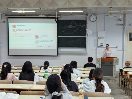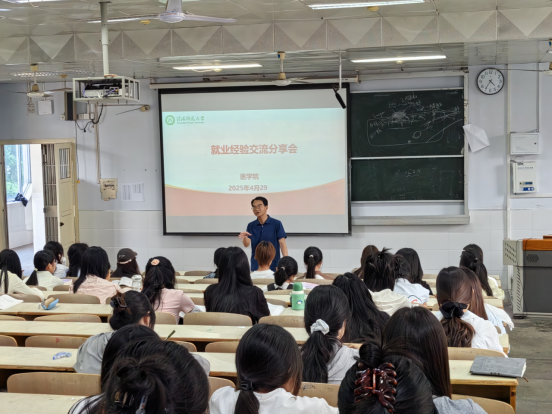 分享会上,三位学长结合自身求职经历,从职业选择、信息搜集、简历制作、面试技巧等方面分享了实战经验。黄楠重点分享了面试技巧,建议同学们提前准备面试问答,抓住求职关键期,即年前的 11 - 12 月份和次年的 1 - 2 月份,把握就业机遇。罗梦晴强调了就业准备的重要性,建议同学们关注小护圈、名医聘、中南地区医护招聘等公众号,做好求职信息的搜集整理,并在求职前充分调研医院,以便更好地展示自己的优势。徐铁力则着重强调了专业能力与实践经验的重要性,重视技能证书加持,积累竞争优势。副书记郭寻认真倾听了同学们的经验汇报,与现场的同学进行了深入交流,提出许多针对性建议,引导并鼓励同学们夯实专业基础、拓展实践技能,为职业发展筑牢根基。