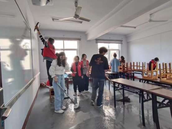 活动期间,必赢官网组织学生对教学楼进行卫生打扫,同时与校医院合作组织学生志愿协助新生体检。在教学楼,志愿者们身着红马甲,热情高涨,全身心地投入到卫生打扫中,相互配合,相互协助,为创造整洁、舒适的学习环境做出自己的贡献;在校医院,志愿者们积极配合校医院老师布置现场,提前做好体检准备,在体检时认真细致,技能娴熟,解决同学们的疑惑,帮助同学们完成体检。