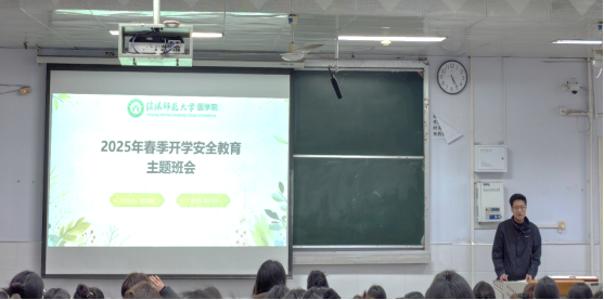 姜钦宸围绕校内外安全、意识形态安全等方面展开讲解:首先在校内安全方面,他着重提醒学生注重宿舍消防安全,通过校园内的真实交通事故案例与诈骗案例,要求学生重视交通安全以及人身财产安全;然后在校外安全方面,要求学生外出游玩必须结伴而行,务必注意请销假纪律;最后在意识形态安全方面,他通过现实案例教育提升学生的明辨是非的能力,要求学生文明上网,不做违反法律法规的行为。