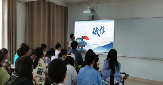 在活动中,主讲人王耀威分享了自己的诚信故事,他从找朋友借钱、答应别人的约定以及按时归还图书馆图书三个方面,分别讲了三个故事。通过这三个常见的日常情况,告诫同学们与人交往要以诚为本,言而有信,尤其是在现代社会随着征信系统的逐渐发展,我们的信用也是有经济价值的。