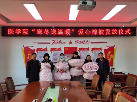为了让每一位学生都能温暖过冬,医学院于2023年12月12日在教8楼101会议室举行“寒冬送温暖”爱心棉被发放仪式。学院党委书记朱伟、副院长宋新强以及受资助学生代表参加活动。