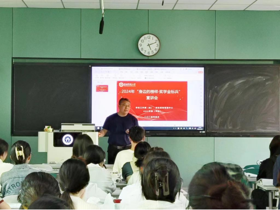 荣宪举为在场师生详细介绍了我校奖学金的概况,从奖学金的设立背景、评定标准、申请流程等方面进行了详细解读,使同学们对奖学金有了更为全面的认识。荣宪举强调了奖学金制度在激励学生努力学习、全面发展方面的重要作用,鼓励大家积极申请,争取荣誉。