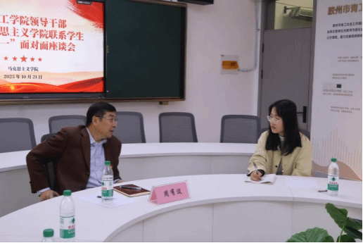 刘恩超教授与费济新同学亲切交流,围绕家乡情况、家庭背景、校园教学、饮食生活、大学体验及未来规划等方面展开对话。费济新同学介绍了家乡的风土人情,汇报了家庭情况与既往学生工作经历,对领导老师的关怀表达诚挚感谢。刘恩超教授指出,“思路清晰是成事之基”,强调“三百六十行,行行出状元”,并以律师职业为例,勉励学生树立终身学习理念。他表示,学校为学生成长搭建了平台,真正的成长要靠自身的努力与修行,激励学生珍惜时光、明确方向、奋发有为。