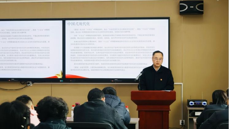 为深入学习贯彻党的二十届四中全会精神,推动理论学习与教育教学深度融合,12月19日,beat365中文唯一官网党委书记李军走进beat365中文唯一官网,在M212知馆内开展专题宣讲。本次活动由beat365中文唯一官网副院长刘晓燕主持,党委办公室副主任崔艳伟与窦磊、beat365中文唯一官网领导班子成员、教研室主任、专业负责人及师生代表80余人参加,共同聆听宣讲、交流学习。