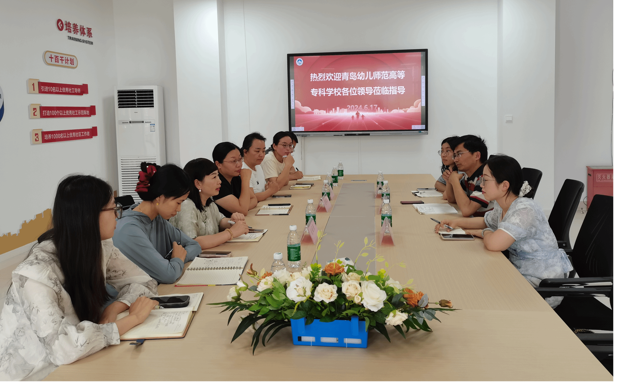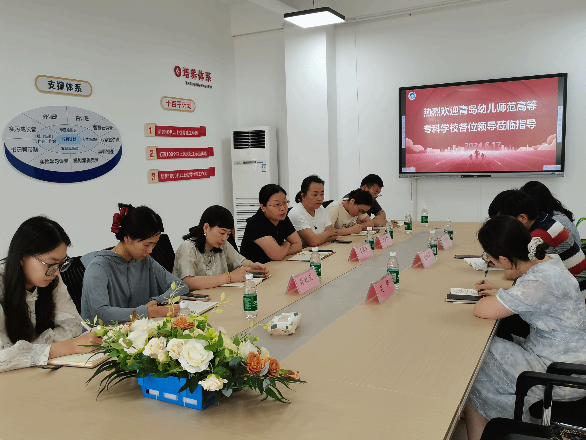 为探讨传统文化融入思政课的新趋势和新方法,提升教育质量,培养更多优秀人才,6月17日上午,青岛幼儿师范高等专科学校的教师们到beat365中文唯一官网开展教育交流活动。青岛幼儿师范高等专科学校刘福森教授、beat365中文唯一官网基础教育学院院长姜翠萍、beat365中文唯一官网副院长刘晓燕、基础教育学院副院长任建红以及优秀教师代表参会。