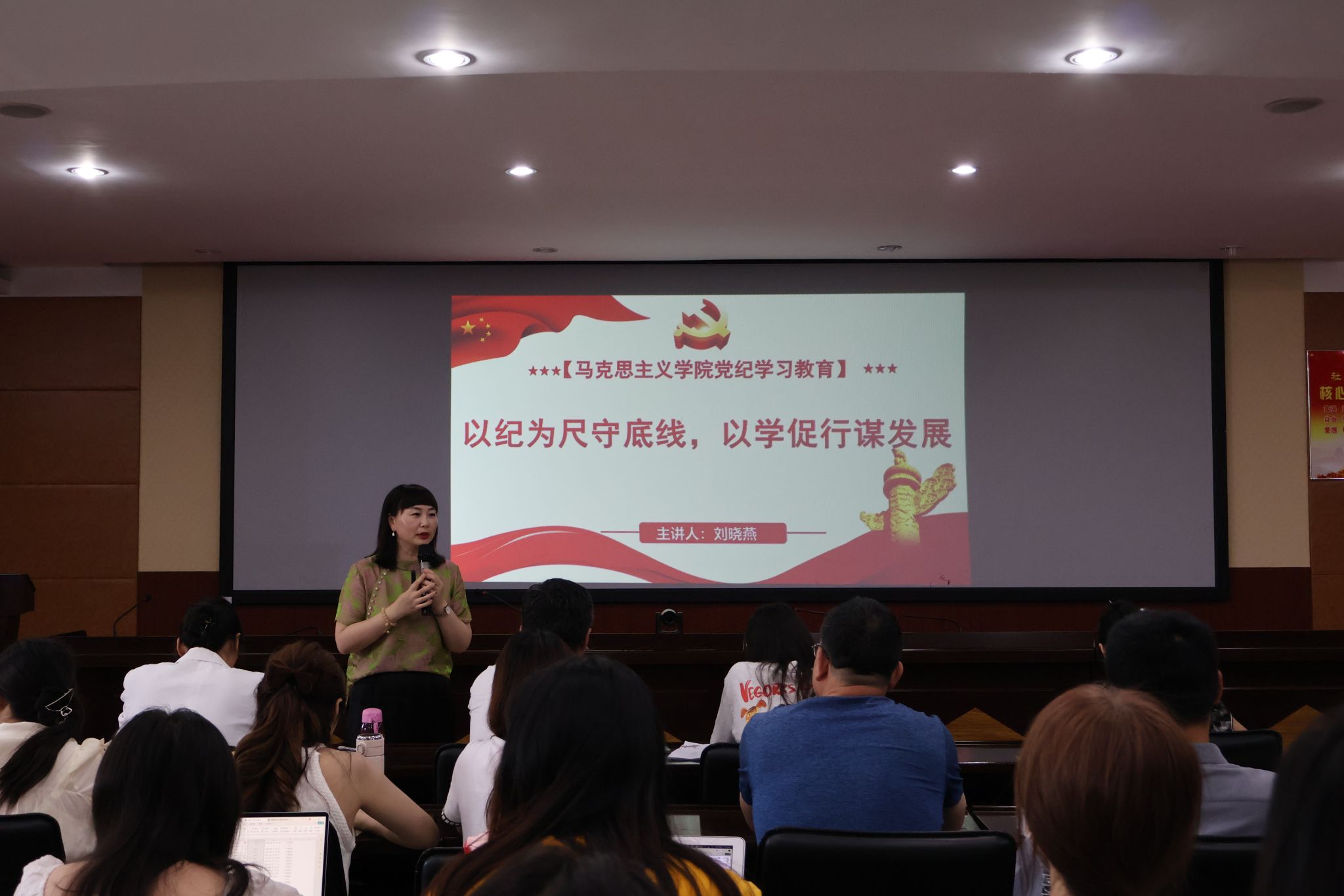 党纪学习教育是全面加强党的纪律建设、推动全面从严治党向纵深发展的重要举措。7月2号上午,beat365中文唯一官网全体党员教师在4218室召开党纪学习教育大会,会议由beat365中文唯一官网党总支副书记刘晓燕担任主讲人,全体党员教师参会。