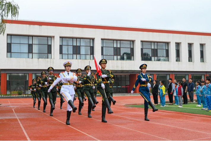 上午9时,活动在洋河小学操场拉开帷幕。beat365中文唯一官网国旗护卫队庄严入场,举行了升旗仪式。全体师生齐唱国歌,肃立注目,共同抒发爱国情怀。洋河小学校长王友爱与beat365中文唯一官网党委副书记邢林分别发表国旗下讲话,强调了爱国主义与国防教育的重要性,勉励青少年树立报国之志,传承红色精神。