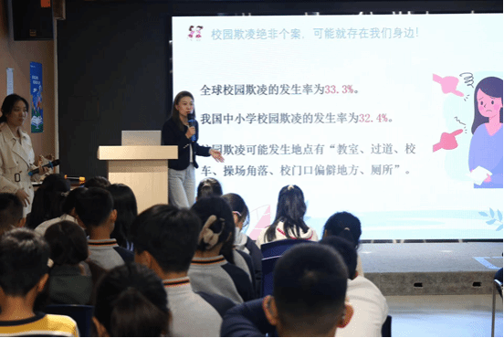 讲座中,程亚楠老师采用心理小剧场的形式,生动再现了校园中常见的欺凌场景,引起了学生们的共鸣。通过互动环节,学生们深刻认识到校园欺凌的危害,学会了如何预防和应对欺凌行为,明白了尊重他人、勇敢说“不”的重要性。