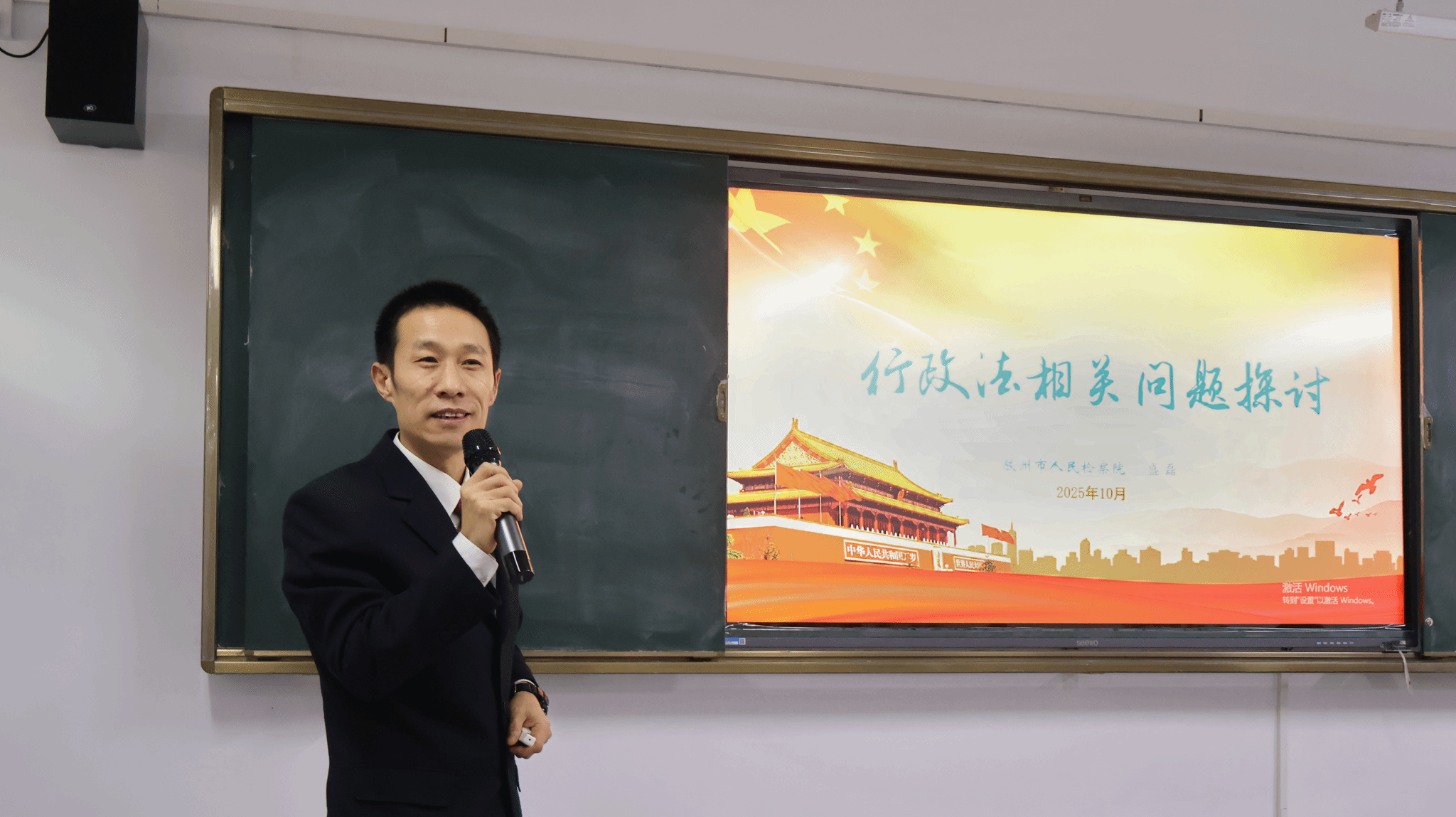 课堂上,盛磊检察官以“行政法相关问题探讨”为主题,结合自身丰富的司法实务经验,从行政诉讼的法律框架到行政执法监督的典型案例,从理论制度的构建到实践中的疑难辨析,进行了系统而生动的讲解。他聚焦真实司法案例深度剖析,将抽象法条转化为鲜活的实务场景,引导学生从执法者、监督者等多元视角,精准把握行政法治的核心要义,让课堂教学既有理论高度,又具实践温度。