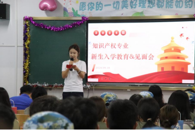 会议伊始,刘蕾副教授发表讲话,她向知识产权专业2024级新生表示热烈欢迎,并详细介绍了知识产权专业、本专业的优秀师资力量和本专业的培养方向介绍,使新生们更加明确了自己的学习目标和前进方向。