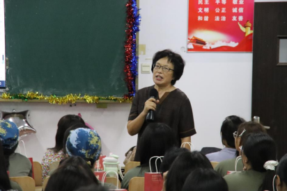 (图为马炎秋教授为新生们送上祝语)