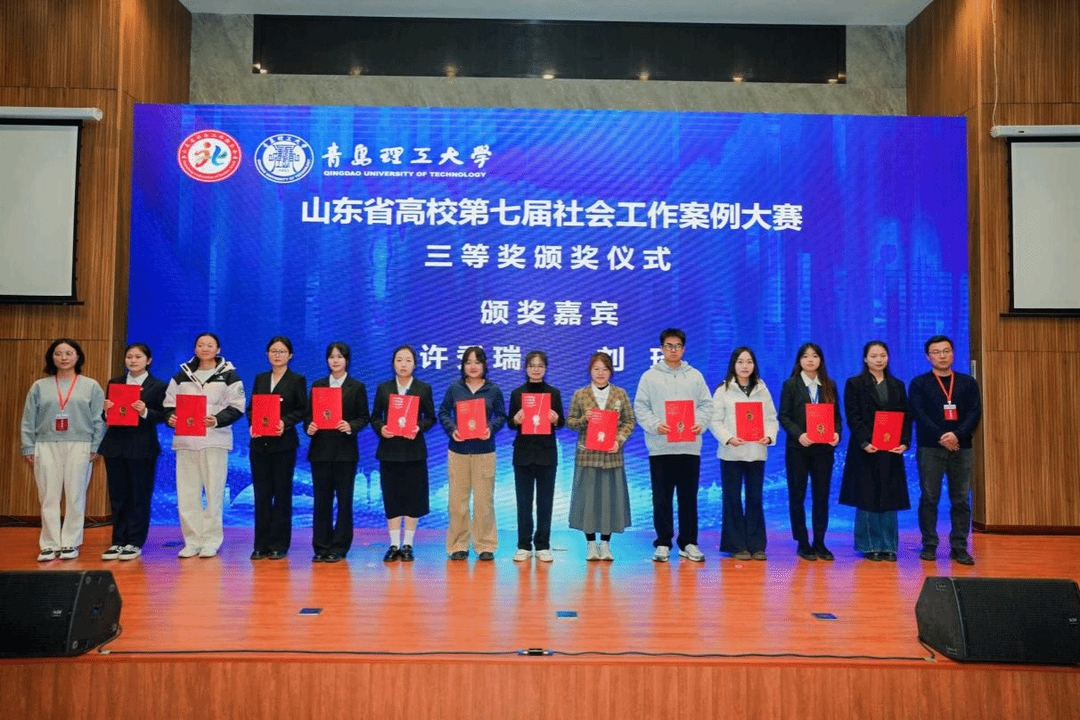 其中,陈爱丽同学汇报的《青工青禾 使能赋能:提升社会工作大学生核心能力的服务学习双向效能案例研究》,依托青岛市市北区人民检察院12355青少年服务台线下服务站,创新构建“服务—学习”双向赋能模式,精准对接社工专业学生与困境青少年需求,通过专业理论与实务场景的深度融合,取得显著服务成效,成功斩获奖项;江立飞同学汇报的《恼羞成善,扶苗助长:轻微犯罪未成年人司法社会工作帮教前置服务案例》,聚焦轻微犯罪未成年人帮教需求,以前置介入为切入点,系统开展认知引导、家庭支持构建及社会融入助力等专业服务,有效降低服务对象再犯风险,凭借鲜明的实务价值与应用意义获评三等奖。