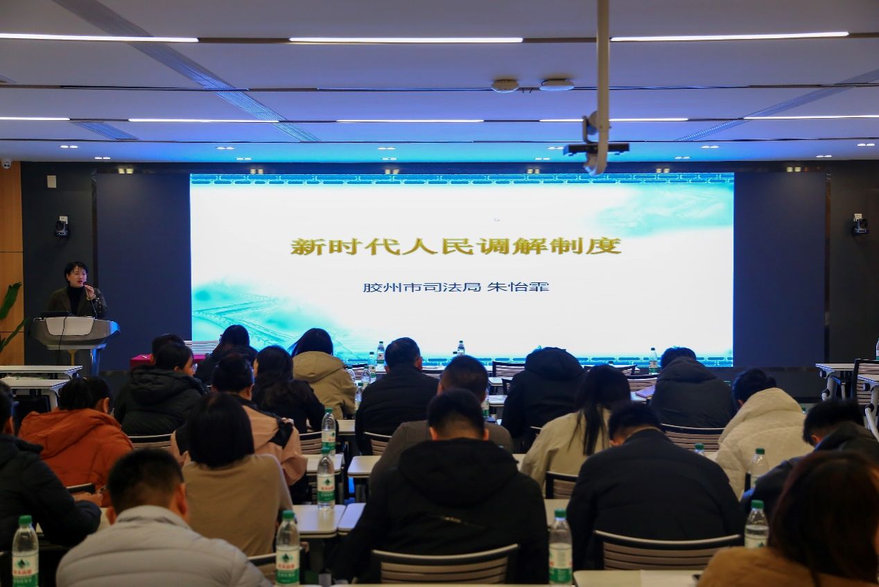 市司法局人民参与和促进法治科科长朱怡霏深入讲解了新时代人民调解制度和实际应用理论。朱科长详细介绍了人民调解制度的起源、发展历程及其实践成效,并分析了新时代下人民调解工作面临的新挑战与新机遇。