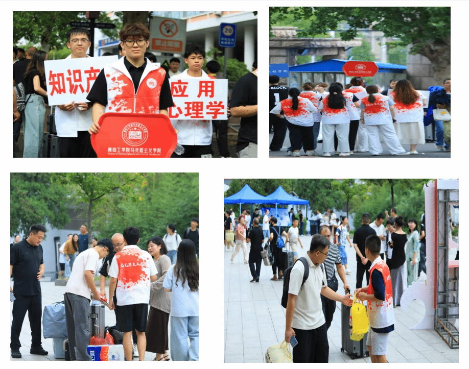 报到点旁,学院特别设置了“入学打卡点”,背景板印有“青马知行 四践青春”的标语。新生们笑容灿烂地按下快门,与青春洋溢的脸庞相映成趣,记录下人生新起点。